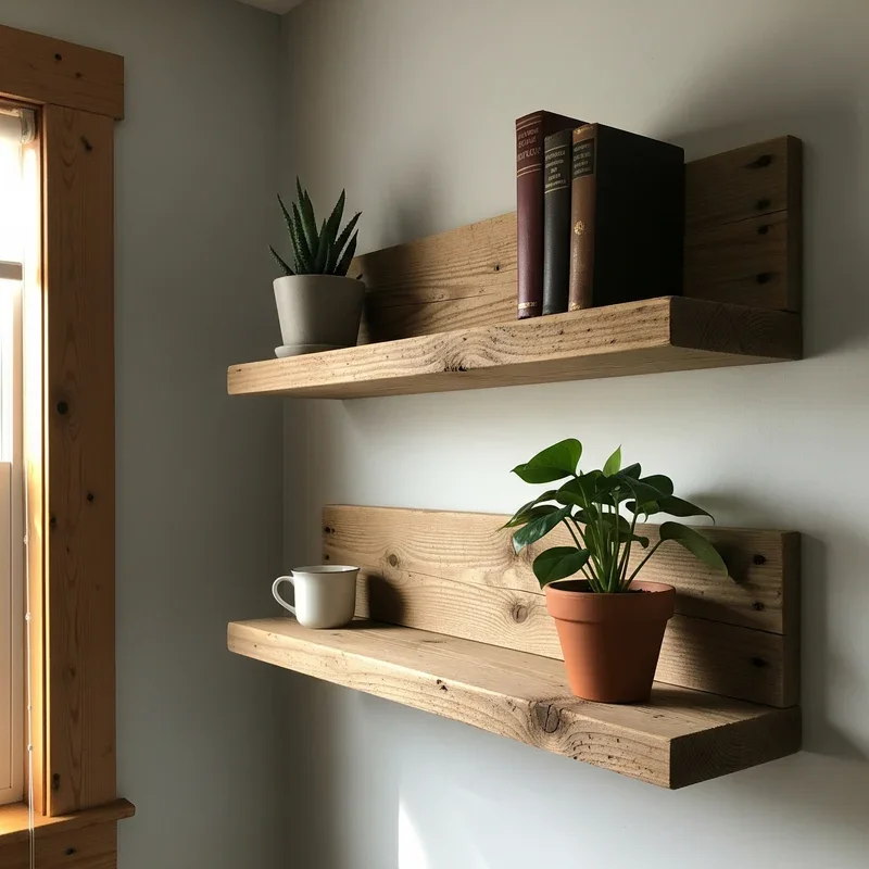 3. DIY Floating Shelves from Reclaimed Wood
