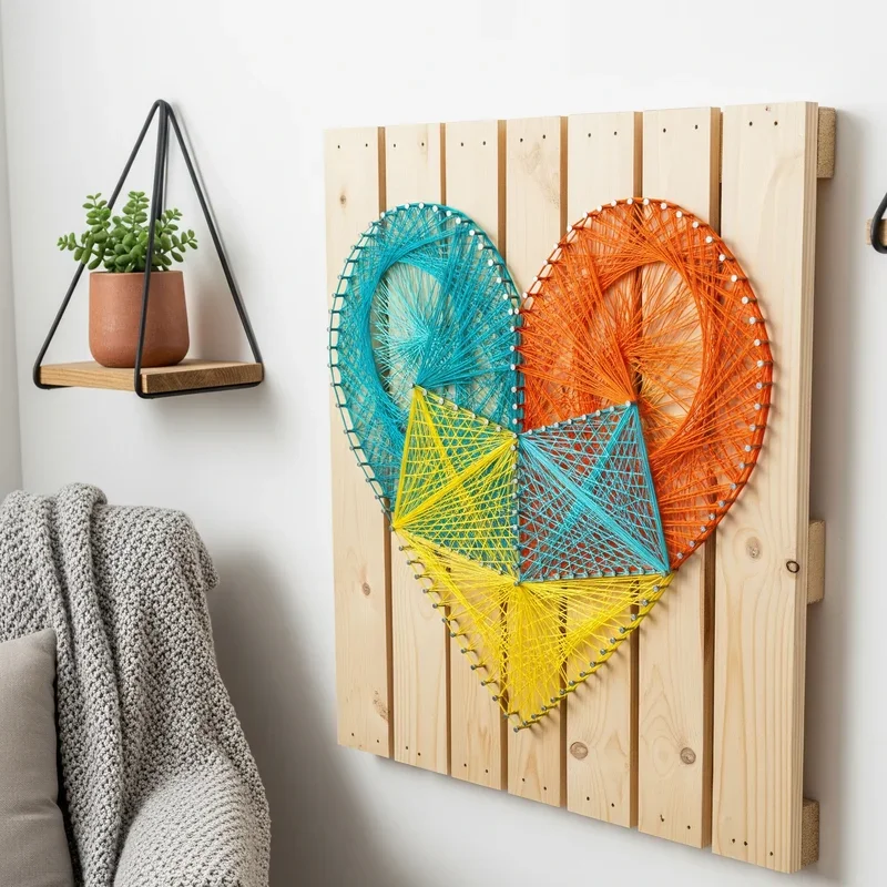 Create geometric or nature-inspired string art that adds color and texture to walls affordably. This meditative craft produces stunning results! Start with painted wood boards and strategically placed nails forming your pattern outline. Wind colored string, yarn, or embroidery floss between nails creating filled or outline designs. Simple shapes like hearts or stars work for beginners while complex mandalas challenge experienced crafters. Use gradient colors for ombré effects or contrasting threads for bold graphic impact. Words, quotes, or initials personalize pieces for meaningful décor that tells your story. Group multiple pieces for gallery walls or create one large statement piece. Your string art becomes textured wall sculpture that adds handmade warmth to modern spaces.