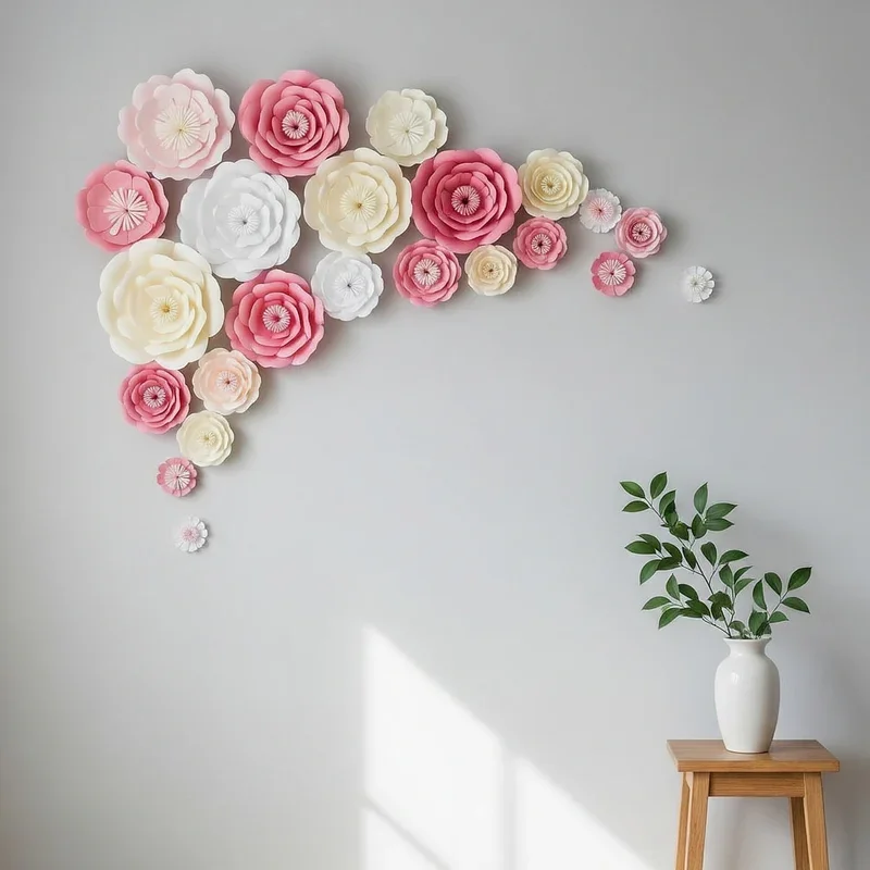 Create stunning three-dimensional flower walls using paper that brings eternal spring to any room affordably. These blooms never wilt! Craft flowers from tissue paper, crepe paper, or even book pages for literary charm. YouTube tutorials guide you through roses, peonies, and exotic blooms step by step. Vary sizes from tiny buds to dinner-plate dahlias for realistic garden effect on walls. Attach with removable adhesive for rental-friendly installations that won't damage paint underneath. Concentrate flowers in corners or create flowing garden designs across entire walls dramatically. Mix colors for rainbow effects or stick to monochrome for sophisticated elegance. Your paper garden becomes an Instagram-worthy backdrop that transforms ordinary walls into botanical wonderlands.