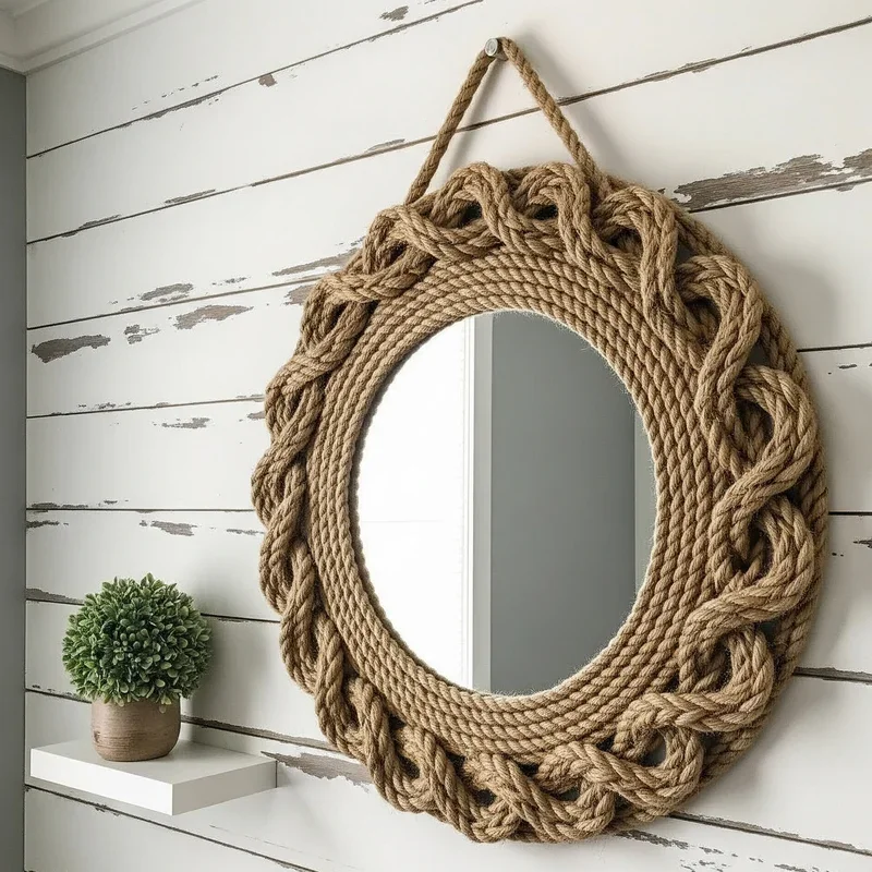 Give plain mirrors nautical charm or rustic appeal with rope wrapping that transforms basic into beautiful. This technique works on any mirror! Start with hot glue at the inner edge, wrapping rope tightly in continuous spiral. Mix rope thicknesses for textured interest or use uniform size for clean, modern looks. Natural jute brings organic warmth while white rope suits coastal or minimalist themes perfectly. Add shells, starfish, or small wooden accents for themed designs that enhance style. The transformation takes under an hour but creates impact that looks professionally crafted. Hang grouped rope mirrors for gallery effect or use one large piece as statement focal point. Your rope-wrapped mirror becomes functional art that reflects light while adding dimensional interest.