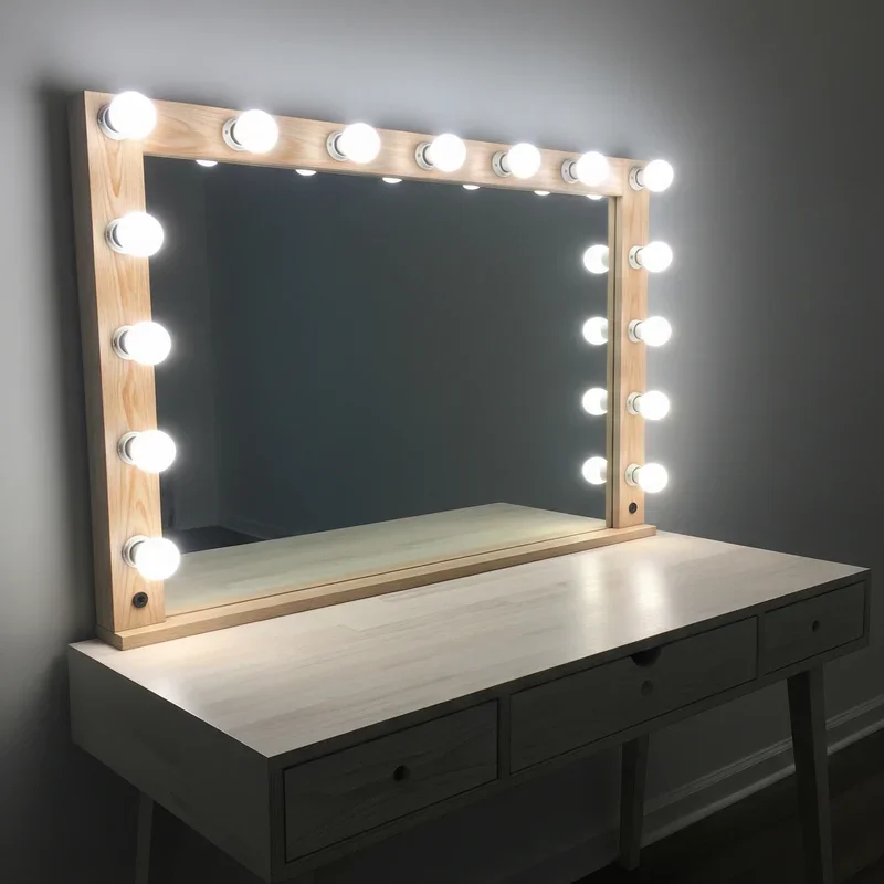 Create that classic Hollywood glamour by installing bulb lights around your existing mirror for professional-quality lighting. This is where DIY meets movie star dreams! Purchase a strand of large globe bulbs and create a frame using simple wood strips or directly attach to mirror edges. Space bulbs evenly for balanced lighting that eliminates shadows on your face completely. Choose warm white bulbs for flattering light that mimics golden hour any time. Add a dimmer switch to adjust brightness for different times and makeup looks. The dramatic lighting instantly elevates even the simplest vanity setup to luxury status. Paint the bulb bases to match your decor or leave them classic black for authenticity. Your Hollywood mirror becomes the centerpiece that makes every makeup application feel like preparing for the red carpet.