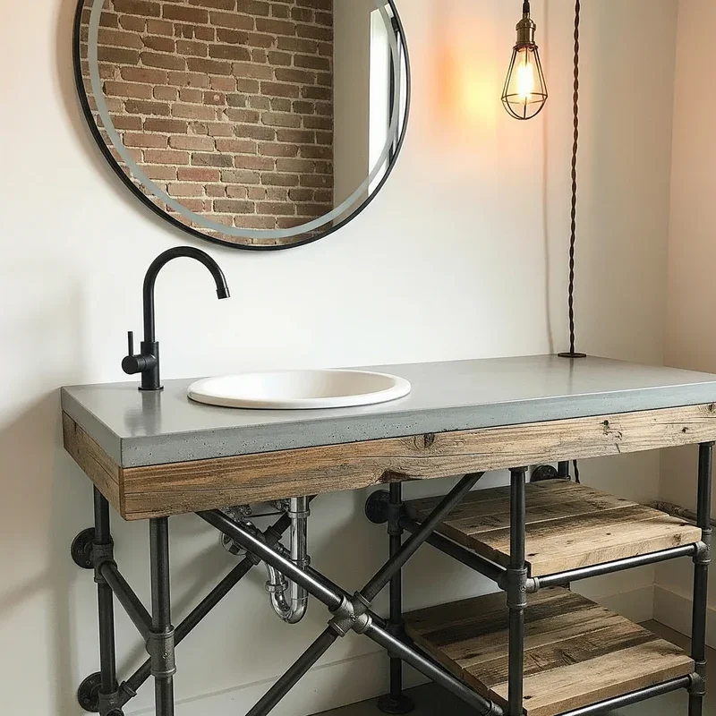 Build a trendy industrial vanity using plumbing pipes and reclaimed wood that brings urban loft vibes to any room. This style is both sturdy and stunning! Source galvanized or black iron pipes from hardware stores to create the frame structure. Choose a thick wood slab or butcher block for the top surface that can handle daily use. The pipe framework provides built-in towel bars and places to hang accessories naturally. Add edison bulb lighting to enhance the industrial aesthetic while providing excellent task lighting. Include a mesh basket suspended from pipes for frequently used items within reach. The open design keeps small spaces feeling airy while providing substantial storage options. Customize pipe configuration based on your specific space and storage needs. Your industrial vanity becomes a statement piece that proves functional furniture can be incredibly stylish.