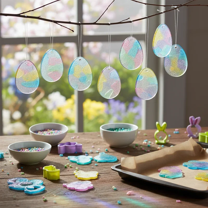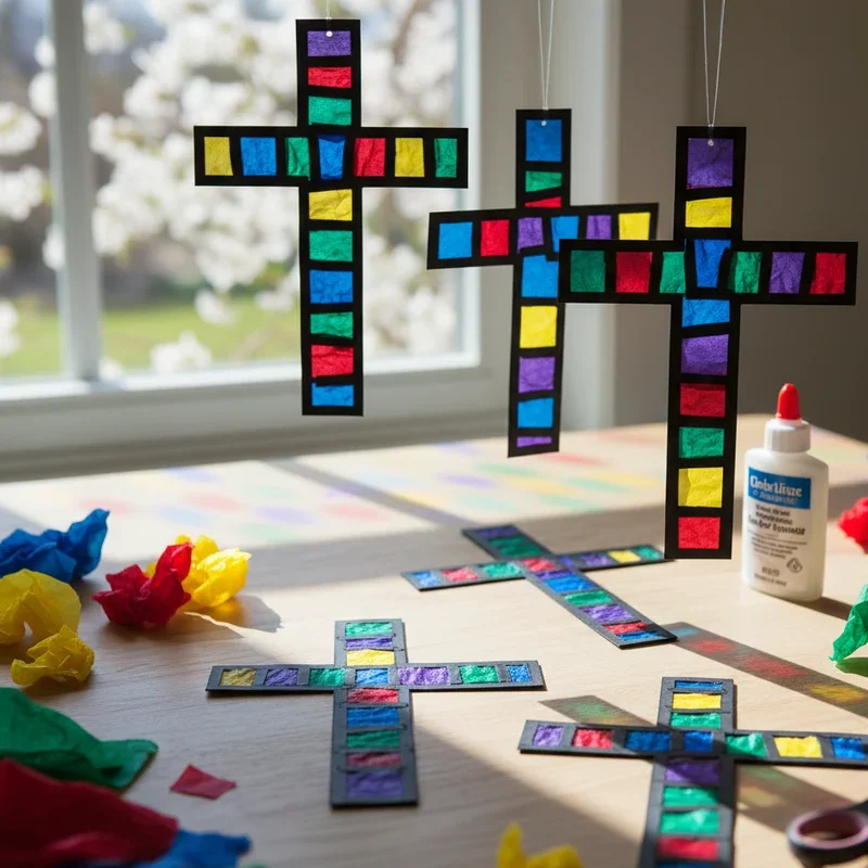 Create reverent Easter decorations by crafting crosses that capture light like cathedral windows. Using cardboard cross templates and colored tissue paper squares, build layered designs that tell the Easter story through color. Apply tissue with diluted glue for a translucent finish that glows when displayed in windows. This meaningful craft opens conversations about Easter's religious significance while developing artistic skills. Choose traditional purples and golds or bright spring pastels depending on your family's style. The forgiving nature of tissue paper means "mistakes" often create beautiful unexpected effects. Older children can cut intricate patterns while younger ones focus on color placement. These crosses become cherished keepsakes that families display year after year, building tradition through handmade decorations that hold memories in every carefully placed piece.