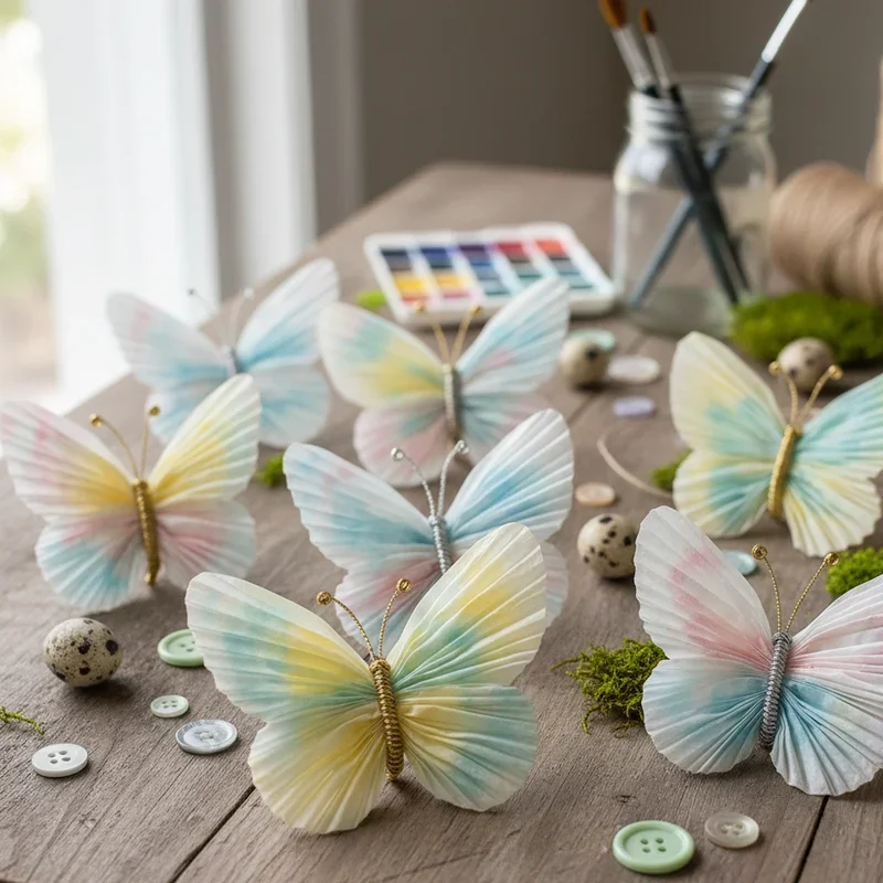 Watch science and art merge as coffee filters transform into delicate butterflies using washable markers and water. Color filters with markers, spray with water, and watch colors bleed into watercolor effects that mimic real butterfly wings. Once dry, gather filters in the center and secure with pipe cleaners that become antennae. This craft combines artistic expression with basic chemistry lessons about absorption and color mixing. The unpredictable way colors blend means each butterfly is genuinely unique, teaching kids to embrace happy accidents in art. Hang these ethereal creatures from ceiling fixtures or create mobiles that dance in spring breezes. The lightweight materials make these perfect for decorating without damage, ideal for renters or temporary displays. Groups can create butterfly migrations across walls, turning rooms into magical spring gardens.