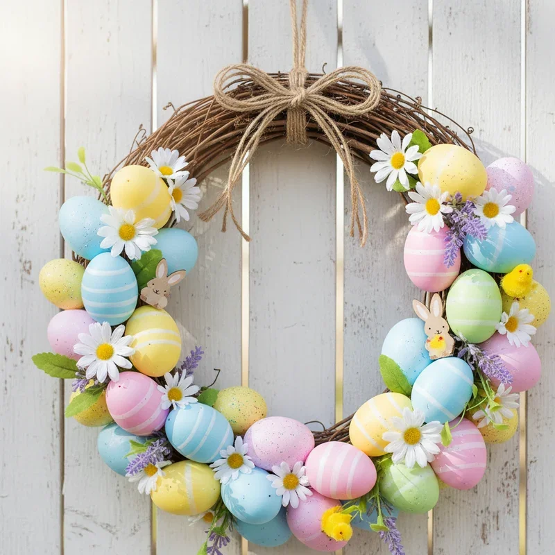 Nothing says Easter quite like eggs strung together in a cheerful garland that dances across your mantle or windows. Using foam eggs, plastic eggs, or even paper cutouts, create a festive string that brings instant spring vibes to any room. Pierce holes through lightweight eggs and thread them onto twine, alternating colors for a rainbow effect that catches light beautifully. Add felt flowers, mini ribbons, or small paper butterflies between eggs for extra dimension and whimsy. This versatile decoration works indoors or outdoors, draped across doorways or wrapped around porch railings. The repetitive nature of stringing makes this a meditative craft perfect for older kids learning patterns or adults seeking stress relief. Best of all, these garlands fold flat for storage, ready to brighten next year's celebration without taking up precious closet space.