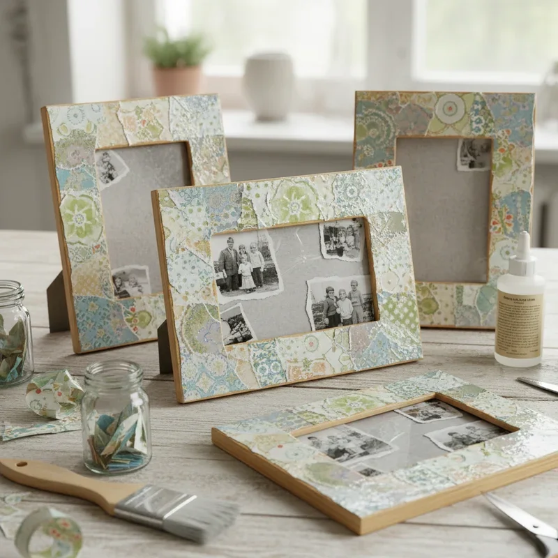 Give old frames new life with decoupage, the art of decorating with paper cutouts! This technique transforms thrift store finds into personalized treasures using mod podge, decorative paper, and imagination. Choose materials like vintage book pages, maps, sheet music, or scrapbook paper that match your style. Layer papers for depth, creating collages that tell stories. The process is forgiving; wrinkles and bubbles often add character rather than ruining projects. Create themed frames for specific photos; use travel maps for vacation pictures or flowers for garden shots. Add dimensional elements like buttons, dried flowers, or small charms before sealing. These frames make incredibly thoughtful gifts, especially when personalized with recipients' interests. The technique works on any frame material: wood, plastic, or metal. Update frames seasonally by choosing appropriate papers. Your gallery wall just got a major personality boost!