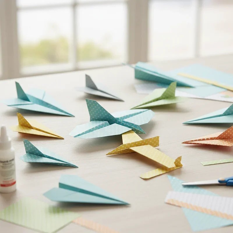 Forget basic dart planes; modern paper airplane design has evolved into an engineering art form! Different folds create different flight patterns: gliders that float forever, stunt planes that loop, or speed demons that zoom straight. The iterative process teaches physics principles through trial and error, making adjustments to improve performance. Use different paper weights to discover how material affects flight: printer paper for reliability, origami paper for precision, or newspaper for size. Decorate before folding for personalized aircraft, or add paper clips for weight distribution experiments. Create target games, distance competitions, or accuracy challenges that get everyone moving. This craft scales perfectly for groups, costs almost nothing, and provides immediate satisfaction. Advanced folders can attempt world-record designs or create their own innovations. The humble paper airplane proves that sometimes the simplest crafts provide the most fun.