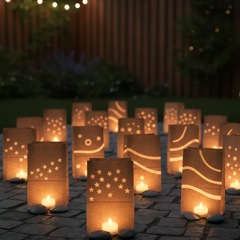 Transform humble lunch bags into enchanting light displays that cost virtually nothing but deliver maximum ambiance! Cut designs into bag sides, from simple stars to intricate lace patterns, then place battery-operated candles inside for safe, flickering magic. The brown kraft paper creates warm, inviting glows, while white bags offer cleaner, more modern aesthetics. Line walkways for parties, create centerpieces for tables, or use as permanent mood lighting in kids' rooms. Colored tissue paper inside adds tinted glows, while sand or rice in the bottom provides stability for outdoor use. These luminaries work for every season: snowflakes for winter, flowers for spring, leaves for fall. The cutting process ranges from simple hole punches to complex knife work, accommodating all skill levels. Weather-resistant versions using wax paper bags extend usage to outdoor events regardless of conditions.