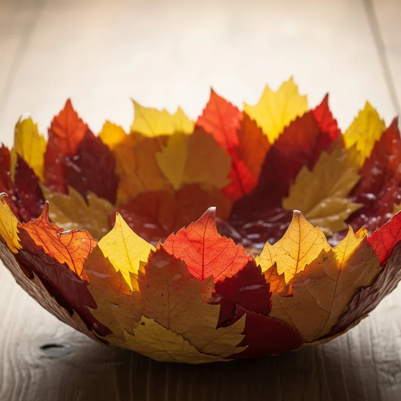 Create stunning decorative bowls that capture autumn's essence in functional art pieces perfect for holding potpourri or seasonal displays. Inflate a balloon to desired bowl size and stabilize it in a cup or bowl with the tied end down. Apply petroleum jelly to the balloon's upper half as a release agent. Brush mod podge onto artificial autumn leaves, layering them overlapping on the balloon's surface, creating your bowl shape. Build multiple layers for strength, allowing each layer to partially dry before adding the next. Ensure leaves overlap substantially at the bottom for stability, creating a solid base. After applying 4-5 layers and allowing complete drying overnight, carefully deflate and remove the balloon. Trim rough edges with scissors for clean finishing. Apply final mod podge coat inside and out for durability and shine. These delicate-looking but surprisingly sturdy bowls make impressive centerpieces filled with potpourri, pinecones, or battery-operated string lights for ambient lighting.