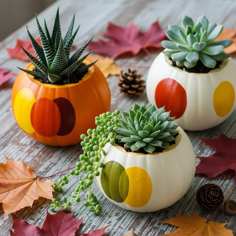 Merge two massive trends into one stunning centerpiece by turning pumpkins into trendy succulent gardens that last well beyond Halloween. Choose medium-sized pumpkins with flat bottoms, either real or high-quality artificial ones for longevity. For real pumpkins, cut the top carefully and scoop out all pulp, letting the interior dry completely before lining with plastic. Paint pumpkins in unexpected colors like sage green, dusty pink, or metallic copper using chalk paint for a matte finish that complements succulent tones. Once dry, fill with succulent potting mix and arrange various succulents, considering height, texture, and color combinations. Include trailing varieties like string of pearls to cascade over edges, mixing with upright varieties for dimension. Add decorative elements like moss, small stones, or miniature fairy garden accessories. These living arrangements make perfect centerpieces, hostess gifts, or front porch decorations that transition beautifully from Halloween through Thanksgiving.