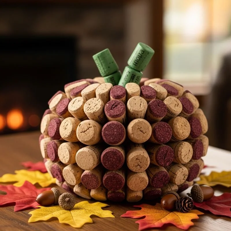 Finally, a legitimate reason to finish that bottle of wine on a Tuesday! Save those corks (or raid your friend's collection) to create adorable miniature pumpkins perfect for tabletop displays. Hot glue corks in a circular pattern, building layers to create pumpkin-like roundness. Paint them classic orange or leave natural for rustic charm. Add a cinnamon stick stem and felt leaves for authenticity. The texture of cork adds unexpected sophistication to typical fall decor. These little beauties cluster beautifully on mantels, nestle into centerpieces, or perch on office desks for subtle seasonal spirit. Make various sizes by adjusting cork quantities, creating a whole pumpkin patch! The best part? They're virtually indestructible, unlike real pumpkins that turn into science experiments by November.