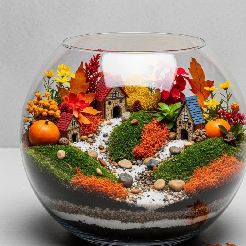 Build miniature fall worlds inside glass containers for year-round autumn magic! Layer pebbles, activated charcoal, and potting soil in clear vessels, then add small succulents or air plants. The fall twist comes from additions: tiny pine cones, preserved leaves, mini pumpkins, or even fairy garden accessories. These self-contained ecosystems require minimal care while maxing out on charm. The process feels like playing in a sandbox but with prettier results. Use various containers from geometric terrariums to repurposed jars for eclectic displays. These living crafts make perfect gifts for plant-challenged friends or office desk gardens. Watching your tiny landscape thrive provides ongoing satisfaction long after the crafting ends.