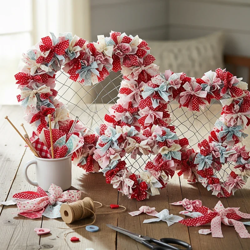 Repurpose fabric scraps into colorful heart wreaths that celebrate love while reducing textile waste! Wrap strips of fabric around wire heart forms, mixing patterns and textures for dynamic designs that showcase your fabric collection. No sewing required; simply tie or hot glue fabric strips for secure attachments that withstand door movements. This sustainable project gives new life to materials that might otherwise be discarded, creating unique decorations that tell stories through familiar fabrics. Include pieces from outgrown children's clothes or worn linens for sentimental value that transforms wreaths into family history displays. The soft texture contrasts beautifully with traditional February decorations, adding cozy touches to winter décor. Hang on doors, walls, or windows where fabric's movement adds kinetic interest to static displays.