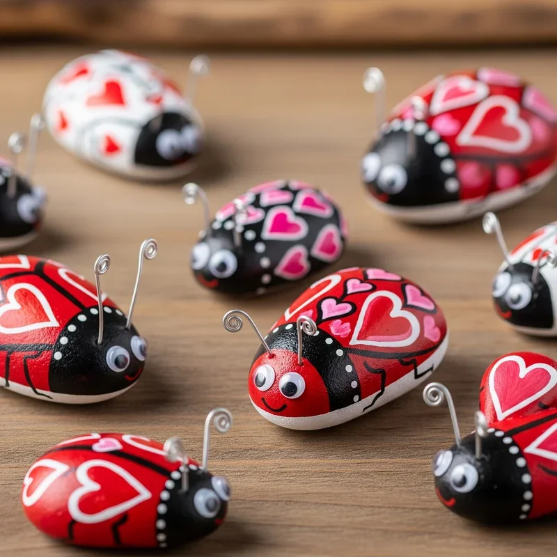 Transform smooth stones into adorable love bugs that spread smiles wherever they're placed! Paint rocks red or pink, adding black dots for ladybug designs or stripes for bee variations themed around love. Use permanent markers for faces and messages like "Bee Mine" or "Love Bug" that play on insect puns. These weather-resistant decorations work indoors on shelves or outdoors in gardens, providing year-round reminders of February creativity. Hide painted rocks around communities for others to find, spreading joy beyond your immediate circle during dreary winter days. The solid nature of rocks makes them perfect for younger crafters who might struggle with delicate materials. Create families of love bugs in various sizes for charming groupings that tell stories without words.