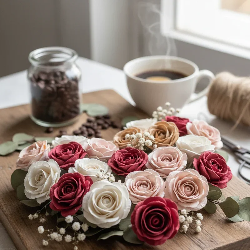 Fold and dye coffee filters into delicate roses that rival expensive silk flowers at fraction of the cost! Dip white filters in diluted food coloring or watercolors, creating subtle color variations that mimic real roses' natural gradients. Layer multiple filters and twist into rose shapes, securing with floral wire for stems that can be arranged like real flowers. These budget-friendly blooms provide elegant decorations for February events without the expense of fresh flowers during peak Valentine's pricing. The absorbent nature of coffee filters creates unique color patterns with each flower, ensuring no two roses look identical. Group into bouquets or attach to gifts for dimensional decorations that impress recipients with your creativity. The lightweight nature makes them perfect for hanging decorations or wearable corsages.