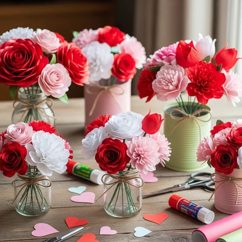 Fold and shape colorful paper into everlasting flower bouquets that brighten February's gray days without wilting! Use tissue paper for delicate roses, cardstock for sturdy tulips, or crepe paper for realistic peonies that fool eyes from across rooms. Layer different paper types and colors within single flowers for depth that rivals real blooms' complexity. These permanent bouquets solve February's limited fresh flower options while providing year-round beauty that never needs water. Add paper leaves and wrap stems with floral tape for professional finishing touches that elevate simple materials into stunning arrangements. Display in vases as centerpieces or give as Valentine's gifts that last forever, symbolizing eternal love better than temporary fresh flowers. The meditative process of flower-making provides stress relief during winter months when outdoor gardening isn't possible.