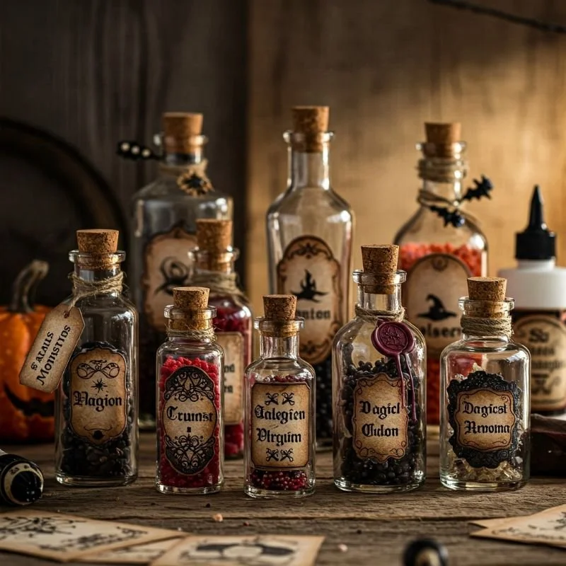 Transform ordinary glass containers into mysterious apothecary vessels that look straight out of a Victorian witch's cabinet. Hunt through thrift stores for interesting bottles with unique shapes—those old olive oil containers and forgotten vases are perfect starting points. You'll need leather cord, vintage-style labels, and a staining technique using strongly brewed tea and a touch of paint to age the glass. I've found that filling bottles with colored water (think deep purple, amber, or poisonous green) and adding curiosities like plastic insects, dried herbs, or small bones creates an authentically sinister look. The best part? Each bottle tells its own story through a carefully crafted label featuring macabre names like "Midnight Tears" or "Essence of Dread." Display them together for maximum impact.