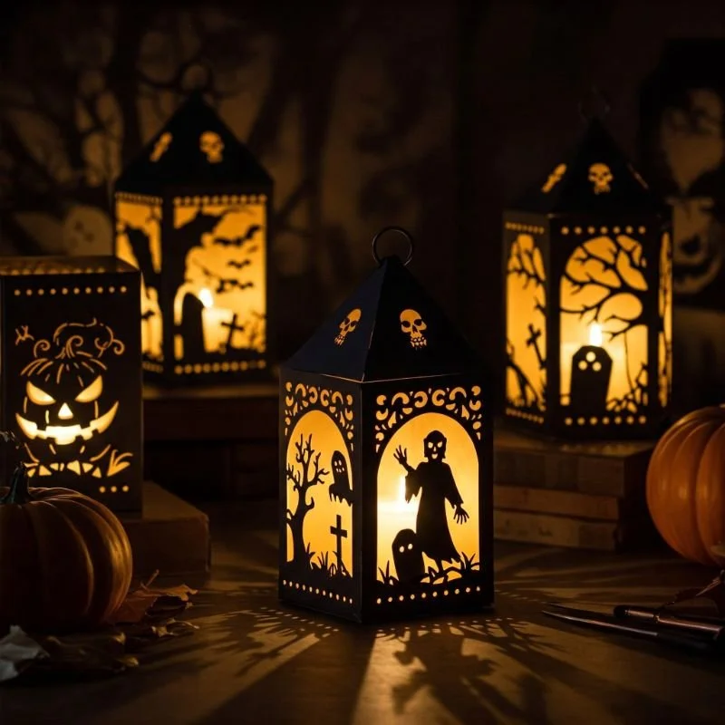 Master the Victorian art of paper cutting to create intricate lanterns that transform ordinary light into supernatural displays. Begin with heavy black cardstock and designs featuring gothic elements like ornate windows, spiderwebs, and gnarled trees. While traditional paper cutting requires steady hands and sharp X-acto knives, digital cutting machines have made this craft more accessible to beginners—like having a ghostly assistant handling the delicate work! The technique involves removing negative space to create patterns through which light will eventually shine. Once your panels are cut, I recommend assembling them into three-dimensional structures using corner tabs and adhesive. When illuminated from within by flickering LED candles, these lanterns cast spectral patterns that transform your space into something reminiscent of a haunted cathedral. Arrange them along walkways or suspend from invisible thread at varying heights for an immersive experience.