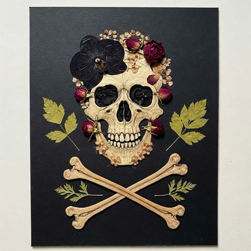 Reimagine traditional pressed flower art with a darkly beautiful twist that celebrates the exquisite nature of decay. While conventional botanical pressing focuses on preserving perfect specimens, this Halloween variation embraces the beauty of the withered and the strange. Collect interesting plant material—blackened hydrangea blooms, skeletal leaves with only their veins remaining, thorny brambles, and mysterious seed pods. The preservation process remains traditional—pressing between absorbent papers under weight for several weeks—but your artistic arrangement takes a sinister turn. Doesn't nature provide the most authentic Gothic textures imaginable? I particularly enjoy creating anatomical-inspired compositions—lungs formed from delicate fern fronds, hearts from deep red rose petals, or skeletal structures from bleached plant stems. Frame these compositions in antique or distressed black frames with glass on both sides to create haunting transparencies that transform when light passes through them.