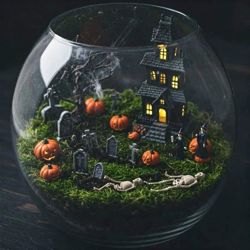 Construct tiny worlds of exquisite horror within glass containers that showcase your attention to haunting detail. Unlike living terrariums, these dioramas feature carefully constructed miniature abandoned buildings, minute cemetery plots, or diminutive haunted forests. The foundation begins with layers of colored sand, small gravel, and preserved moss to create realistic terrain. Have you ever lost yourself in the meditative process of creating something impossibly small? That's the magic of these pieces. I find particular satisfaction in incorporating found natural elements—tiny twigs become gnarled trees, small stones transform into weathered tombstones, and dried flowers add touches of decaying beauty. Miniature figurines (available in model railroad supplies) provide scale and narrative possibilities. Consider adding battery-powered micro LED lights hidden beneath translucent elements to create an otherworldly glow that brings your haunted world to life after dark.