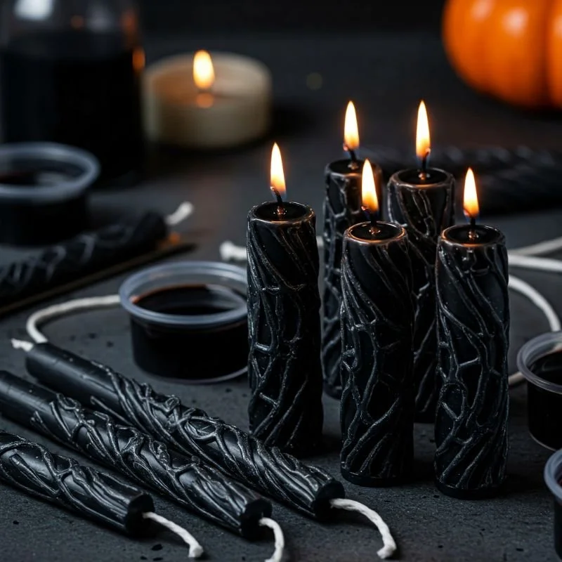 Craft bespoke candles that bring darkly sophisticated illumination to your Halloween tablescapes. While black candles establish instant Gothic ambiance, hand-dipping allows you to create unique textural effects impossible to find in store-bought versions. You'll need paraffin wax, black candle dye, cotton wicking, and patience for this meditative craft. The process involves repeatedly dipping your suspended wick into melted wax, allowing each layer to cool between dips. Doesn't this rhythmic creation process feel almost like a ritual itself? I particularly love incorporating subtle haunting elements—embedded botanicals like dried nightshade leaves, light dustings of iridescent powder between layers, or carving delicate drip patterns once the candles have solidified. For extra dimension, consider experimenting with ombré effects by gradually increasing dye concentration or dipping candle ends in metallic powder for a two-toned effect that gleams ominously in low light.