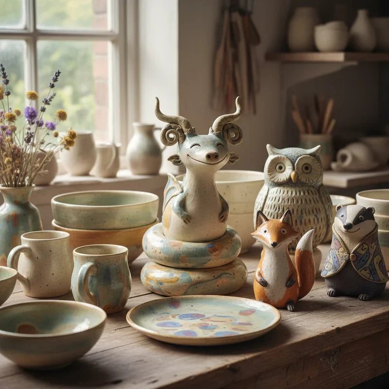 Animal sculptures let you explore pure creativity without functional constraints, creating characterful creatures that bring joy and personality. Hand-build simplified forms focusing on gesture and expression rather than anatomical perfection. Exaggerate features for charm; oversized eyes, tiny legs, or elongated necks add whimsy and humor. These sculptures develop hand-building skills while encouraging playful experimentation without pressure. Create fantastical creatures or stylized versions of real animals depending on your imagination. Surface decoration through carving, painting, or glazing brings personalities to life. Display collections on shelves where they spark smiles and conversation. Consider making series exploring different animals or expressions. These projects reconnect you with creative play, reminding you that pottery doesn't always need function to have purpose. Your whimsical menagerie adds handmade warmth and storytelling elements that make spaces feel personal and loved.