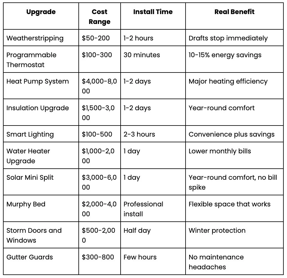 Planning home improvements? These 10 upgrades deliver real value before year-end. From energy efficiency to space-saving solutions.