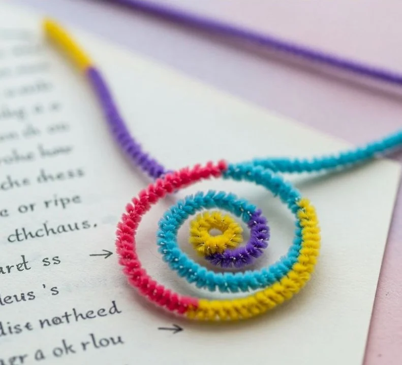 Reading is more fun when you’ve got a playful bookmark peeking out of your novel. Take one or two pipe cleaners in contrasting shades, twist them together, and then coil them around a pencil or even your finger. Slide out the pencil to reveal a spring-like spiral. At one end, bend the pipe cleaners into a small loop or heart shape, which can rest at the top of your pages. You might dangle a charm or bead from that loop for added flair. The soft texture won’t damage the book pages, and the bright colors make it easy to spot on a crowded desk. Each time you crack open your book, that swirl of color can’t help but bring a grin. It’s a small, cheerful detail that turns every reading session into an event.