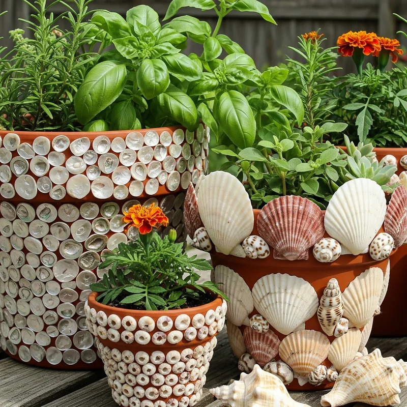 15. Shell-Decorated Plant Pots
