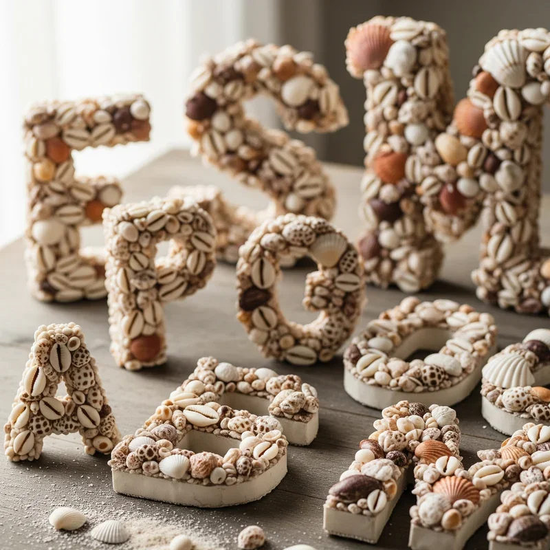 Personalize your space with dimensional letters decorated in shells that spell names, words, or initials with coastal character! Purchase cardboard or wooden letters from craft stores, providing sturdy bases for shell application. Plan shell placement before gluing, ensuring even coverage that maintains letter readability from distances. Mix tiny shells for detailed areas with larger specimens for broad surfaces, creating textural variety within each letter. Paint letters in ocean hues before adding shells for colorful backgrounds that peek through gaps. These decorative letters work wonderfully in nurseries spelling children's names, or in living rooms displaying inspirational beach-themed words like "SEAS THE DAY." Mount finished letters on walls or display on shelves as three-dimensional art that adds personality to any room.