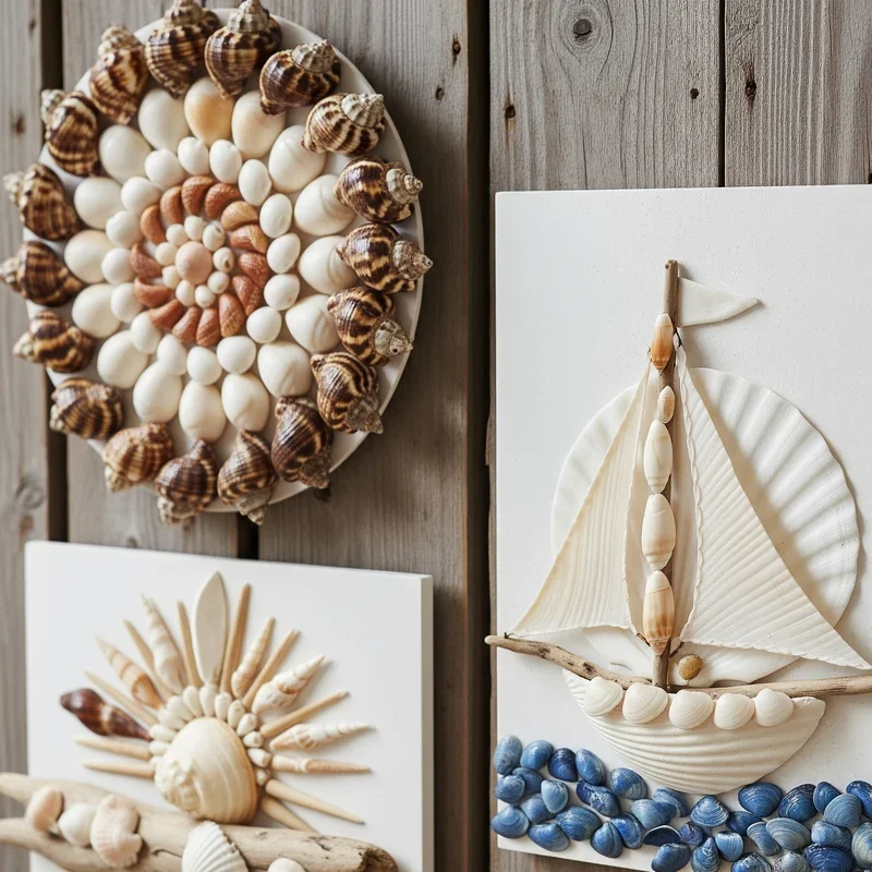 Arrange shells into framed artworks that rival gallery pieces through thoughtful composition and creative presentation techniques! Mount shells on canvas or heavy paper using strong adhesive, creating patterns, scenes, or abstract designs. Experiment with monochromatic schemes using shells in similar tones for sophisticated results that complement modern interiors. Add dimension by layering shells at different heights using foam dots or building graduated compositions. Consider negative space as important as shell placement, allowing designs to breathe rather than overwhelming viewers. Frame finished pieces in shadow boxes to protect delicate arrangements while adding professional presentation. Create series of smaller pieces for gallery walls that tell coastal stories through coordinated but varied designs.