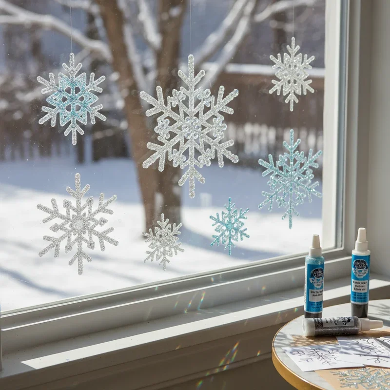 Want decorations that sparkle like fresh snow but peel off easily when winter ends? Glitter glue window clings are your answer! Draw snowflake designs on wax paper or plastic sheets using glitter glue, making sure the lines connect for stability. Let them dry completely (patience is key here), then carefully peel them off for reusable window decorations that catch the light beautifully. Mix different glitter glue colors for an aurora borealis effect, or stick with classic silver and white for elegant simplicity. These clings work wonderfully on mirrors, glass doors, and even car windows for festive travel. The best part? They're completely mess-free once made and can be stored flat between wax paper sheets for next year's winter decorating.