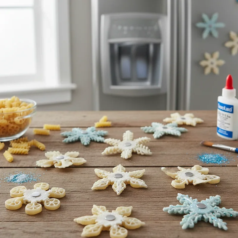 12. Pasta Snowflake Magnets
