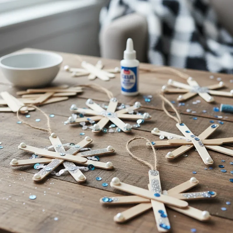 3. Popsicle Stick Snowflake Ornaments