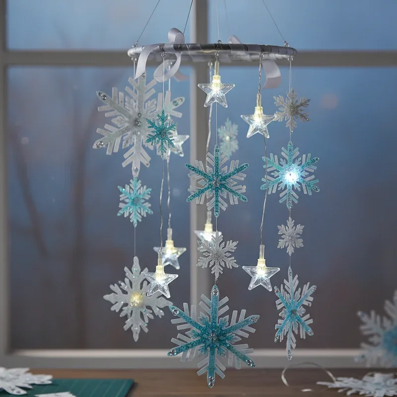 Create a magical winter night sky in any room with an illuminated snowflake mobile. Craft snowflakes from translucent materials like vellum, tissue paper, or thin plastic, then incorporate battery-powered LED string lights for a gentle glow. Hang them at varying heights from a embroidery hoop or branch for a stunning display that serves as both art and night light. This project combines all your snowflake crafting skills into one show-stopping piece. Use color-changing LEDs for extra magic, or stick with warm white for cozy ambiance. This mobile creates beautiful shadows on walls and ceilings, transforming bedrooms into winter wonderlands. Perfect for children afraid of the dark or adults who never outgrew their love of twinkle lights.