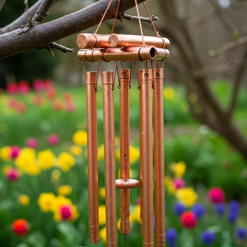 Harness spring breezes with handcrafted wind chimes that combine industrial materials with musical sensitivity. Cut varying lengths of copper pipe using a pipe cutter, then clean and polish each piece to enhance its natural luster. The musical magic happens through careful measurement—each pipe length creates specific tones when struck, allowing you to design harmonious sound combinations. Have you ever noticed how certain sounds seem to perfectly capture a season's essence? For spring-specific melodies, I prefer arrangements in higher registers that mimic birdsong patterns. String pipes using durable monofilament through drilled holes, suspending them from a central wooden or copper ring decorated with spring embellishments like ceramic beads or sea glass. These sophisticated sound sculptures bring kinetic movement to garden spaces while creating authentic music from spring's variable winds—functional art that engages multiple senses while developing a natural patina that records the passing seasons.