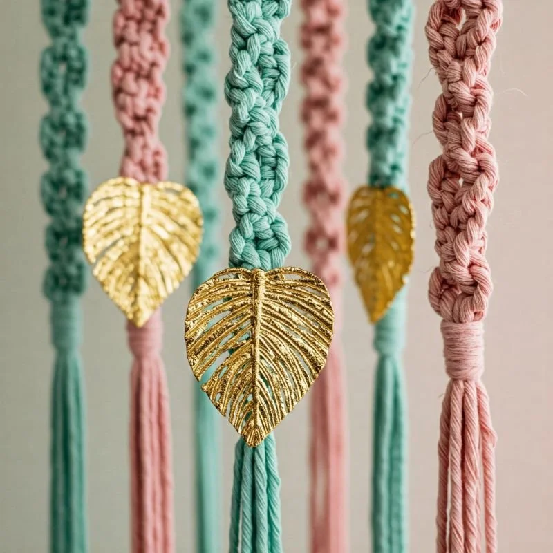 Elevate traditional macramé with metallic accents that add contemporary sophistication to this revived craft technique. Create standard plant hangers using natural cotton cord and basic macramé knots, then introduce unexpected elegance by incorporating copper wire within select sections of your pattern. The transformative element comes through metallic leaf application—using sizing adhesive and copper or gold leaf sheets to gild portions of the completed macramé, particularly around transition points or decorative knots. Doesn't the combination of natural fiber and metallic shine create fascinating tension? I particularly enjoy the way these hangers catch spring light from windows, creating subtle movement through metallic reflection. For added spring celebration, select planters in complementary pastel tones or concrete vessels that provide textural contrast. These elevated plant hangers transform ordinary houseplants into dramatic vertical displays, freeing precious surface space while drawing the eye upward—like botanical jewelry for your home.