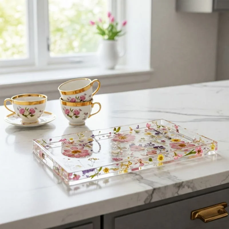Preserve spring's most beautiful blooms in a functional serving piece that showcases botanical specimens in crystal-clear resin. Begin with a wooden tray form, sealing and preparing the surface for resin application. The artistic process unfolds as you arrange pressed spring flowers—pansies, violas, and cherry blossoms work beautifully—within the tray form, securing them in position with a thin initial layer of resin. Doesn't it feel magical to suspend time this way? After this positioning layer cures, pour additional resin to completely encase flowers, creating the illusion of specimens floating in glass. I find this technique particularly rewarding for preserving meaningful blooms—perhaps flowering herbs from your garden or blossoms from significant locations. Once fully cured, sand edges for a professional finish and apply food-safe sealer. This sophisticated serving piece brings spring's beauty to year-round entertaining while preserving botanical specimens that would otherwise fade—functional art that tells your seasonal story.