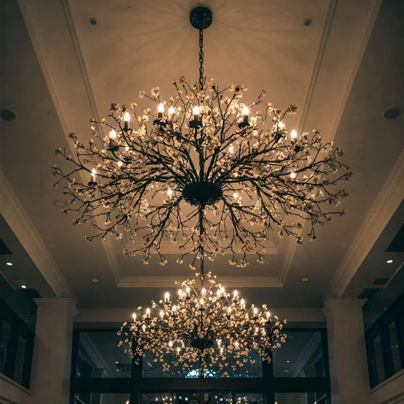 Bring the outdoors in with a suspended botanical installation that transforms bare spring branches into a floating sculptural centerpiece. Collect interesting branches showing early buds or blossoms—cherry, forsythia, and pussy willow work beautifully. Using clear fishing line, suspend these branches horizontally from a concealed embroidery hoop or wire wreath form, creating the illusion of branches floating in space. Wouldn't it feel magical to dine under your own indoor spring canopy? I enhance these installations by wrapping select branches with subtle copper wire and attaching tiny LED fairy lights for evening ambiance. For additional dimension, suspend small glass bud vases containing fresh spring blooms or hang delicate paper birds among the branches. This living sculpture evolves throughout the season as buds open and eventually leaf out, creating a dynamic installation that chronicles spring's progression within your home.