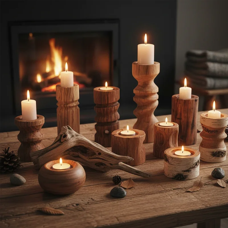 Craft atmospheric candle holders that transform ordinary candles into decorative focal points for any space. Design tea light holders with interesting patterns that cast beautiful shadows when lit. Create pillar candle stands of varying heights for dramatic table displays and mantels. Price from $10 for simple tea light holders to $60 for elaborate multi-candle centerpieces. Use different wood types and finishes to match various decor styles from rustic to contemporary. Include safety features like metal inserts or heat-resistant finishes for customer confidence. Offer seasonal designs for holidays when candle usage and gifting increase dramatically. Your candle holders become mood-setters that enhance ambiance, proving that supporting elements deserve attention equal to the candles themselves.
